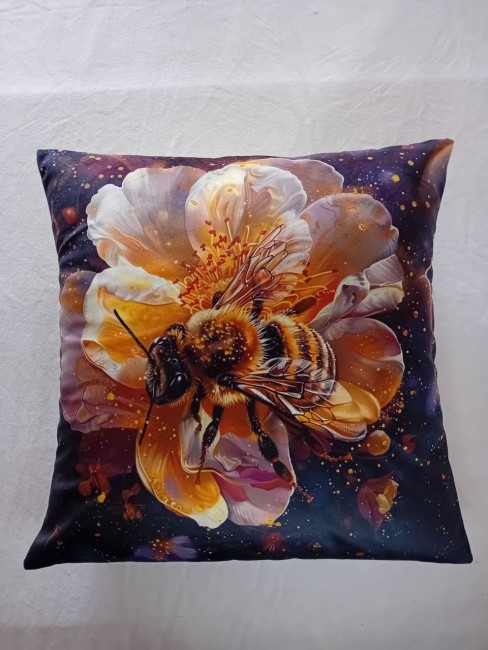 Composition : Une face en velours imprimé. Une face en tissu uni avec fermeture en portefeuille.