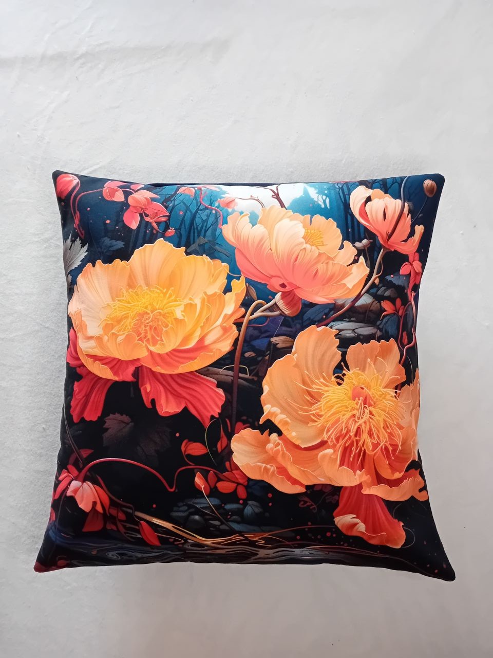 Composition : Une face en velours imprimé. Une face en tissu uni avec fermeture en portefeuille.