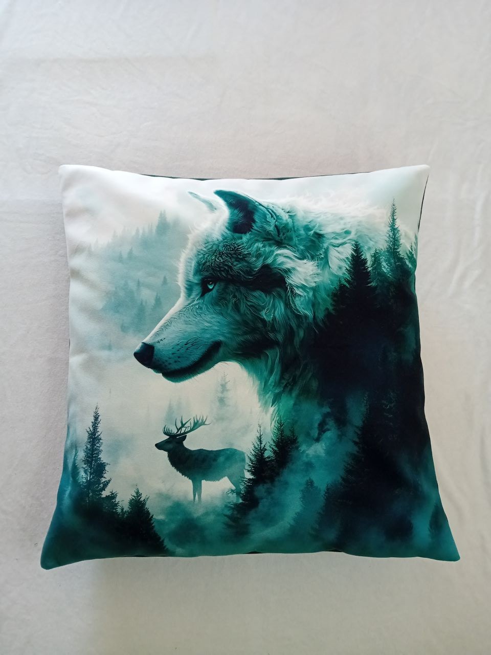 Housse de coussin loup et cerf
