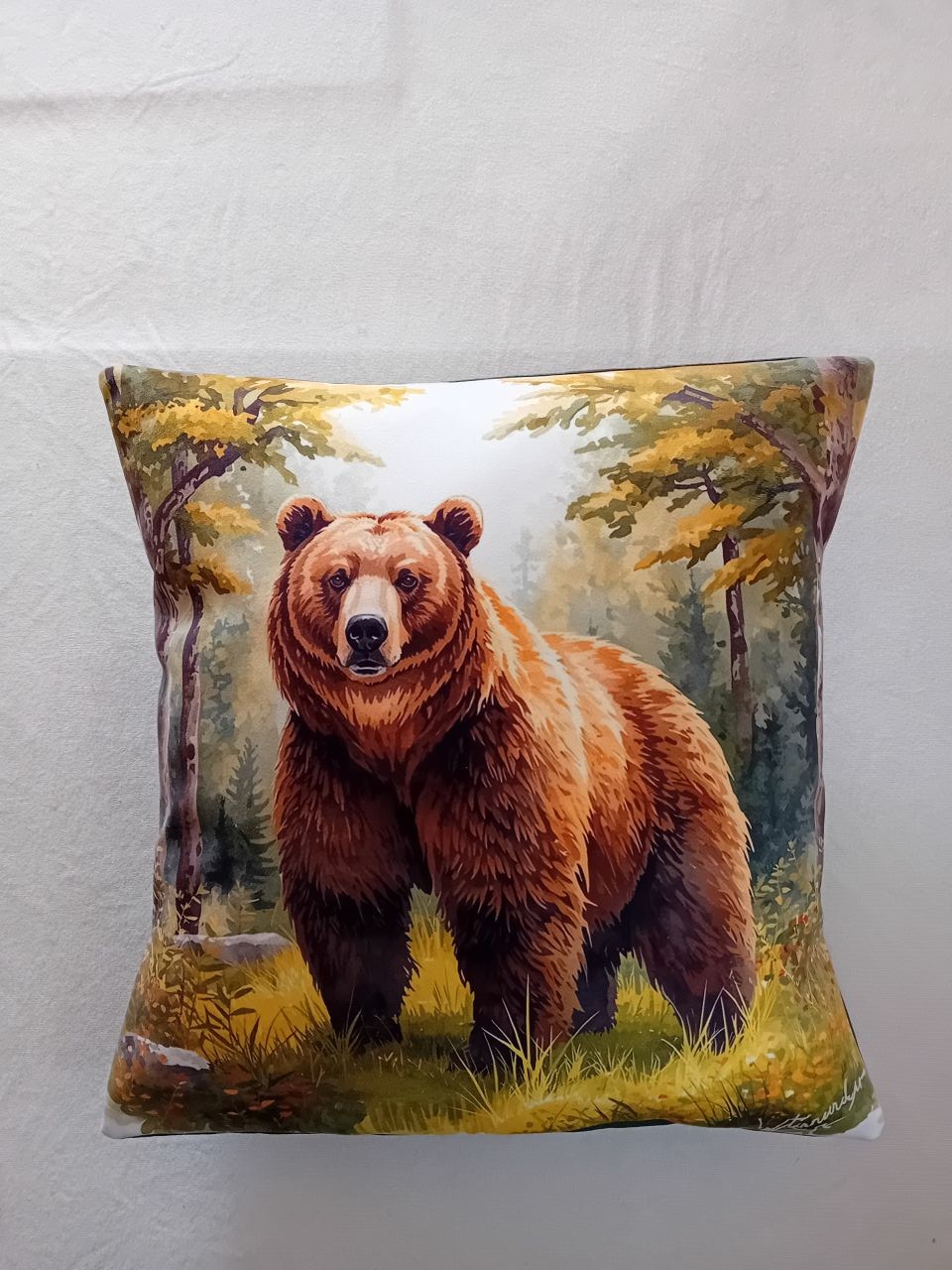 Housse de coussin ours aquarelle