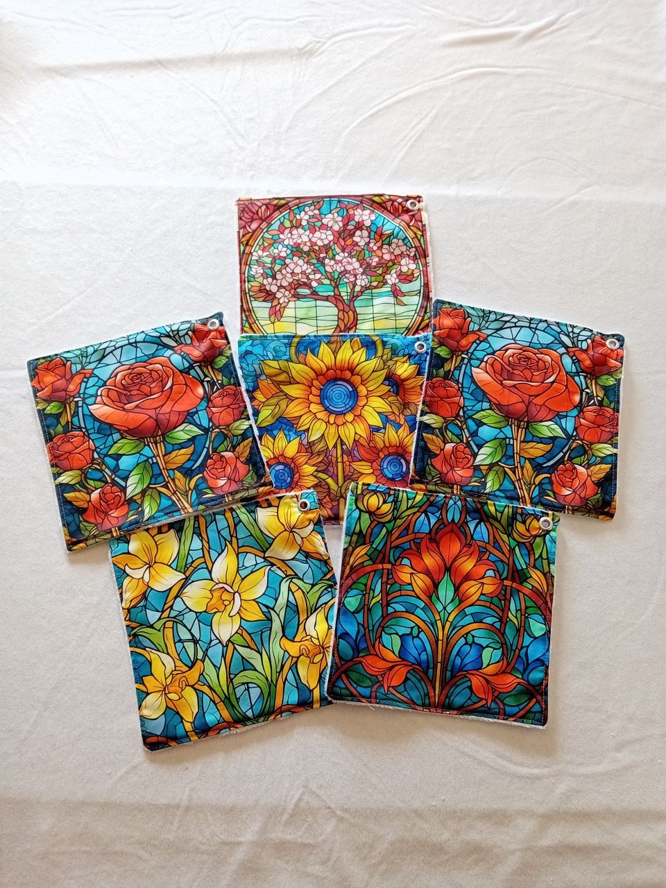 Contient 6 carrés reliés par un anneau pour les suspendre.