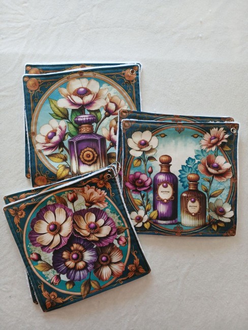 Contient 6 carrés reliés par un anneau pour les suspendre.